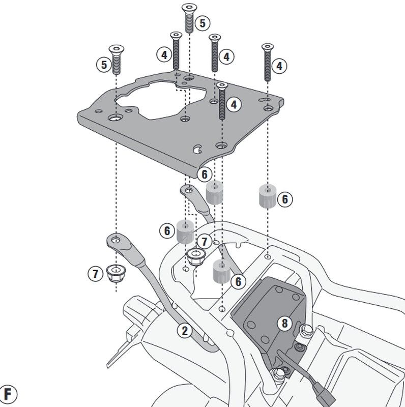 A combinar con las parrillas MONOKEY® M5, M7, M8A, M8B, M9A y M9B o las parrillas MONOLOCK® M5M y M6M, o el portabolsa en aluminio anodizado EX2M / si se combina con M8A, M8B, M9A, M9B no permite la instalación de un kit de luz stop sobre la maleta y/o dispositivo de mando a distancia para la apertura de la maleta para ROYAL ENFIELD Himalayan (21 > 22)