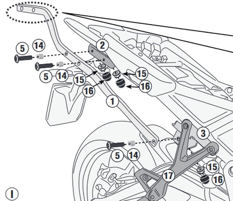A combinar con las parrillas MONOKEY® M5, M7, M8A, M8B, M9A y M9B o las parrillas MONOLOCK® M5M y M6M, o el portabolsa en aluminio anodizado EX2M / también se puede montar en presencia de las maletas laterales originales