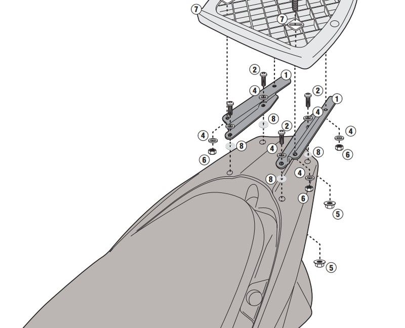 Adaptador posterior de portaequipajes parrillas y baúles específico para maleta Monokey o Monolock tanto de la marca Givi como Fappa. Adecuado para HONDA Vision 110 (21 > 23) y HONDA Vision 50-110 (11 > 20)
