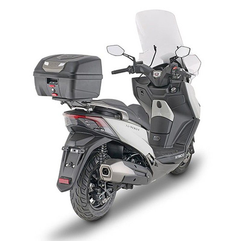 Maleta MONOLOCK® de 32 Lts, negra, con embellecedor superior pintado en color plata satinada. Incluye parrilla y kit universal. Capacidad: 1 casco modular