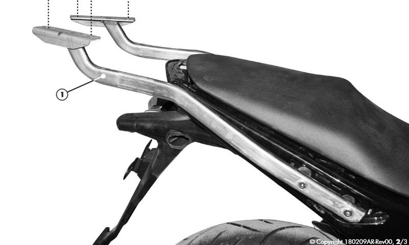 Adaptador posterior específico para maleta MONOKEY® o MONOLOCK® para KAWASAKI ER-6n / ER-6f 650 (09 > 11) A combinar con las parrillas MONOKEY® M5, M7, M8A, M8B, M9A y M9B o las parrillas MONOLOCK® M5M y M6M, o el portabolsa en aluminio anodizado EX2M / si se combina con M8A, M8B, M9A, M9B no permite la instalación de un kit de luz stop sobre la maleta y/o dispositivo de mando a distancia para la apertura de la maleta / se deben quitar las asas originales, se reproducen con el portapaquetes