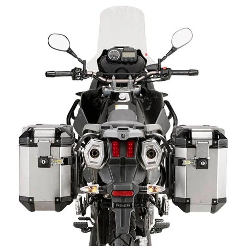 Compatible con el portamaletas lateral tubular PL_ _ _CAM, PLR_ _ _CAM. Juego Maletas Trekker Outback, Litros con estructura de aluminio y bordes perfilados de aluminio. Equipado con el nuevo sistema de fijación MONOKEY®CAM-SIDE, mecanismo de fijación de aluminio fundido a presión e inserciones mejoradas de polímero de alta tecnología.
