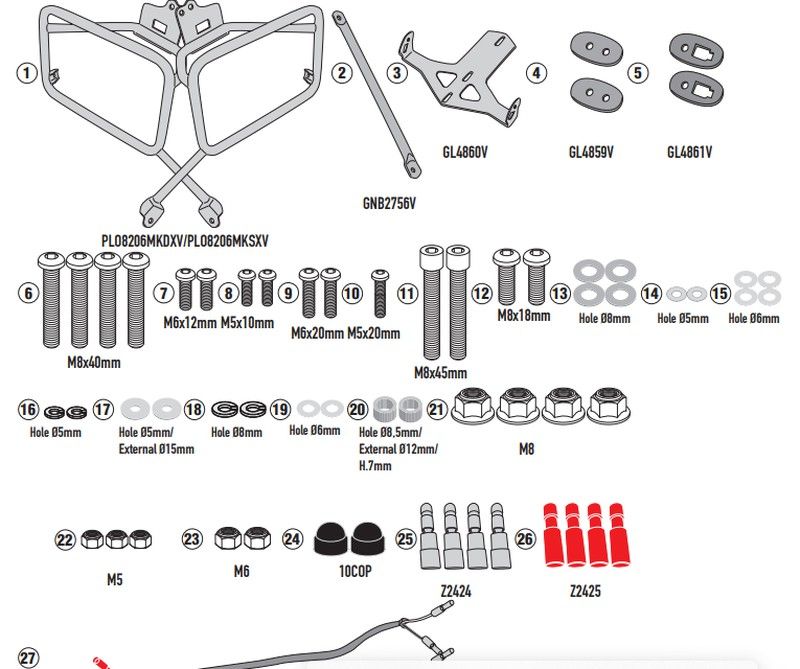 diámetro 18 mm / no es compatible con la maleta TRK35 Trekker / no es compatible con GRT709 y GRT720 para Moto Guzzi V7 850 Stone / Special (21 > 23)