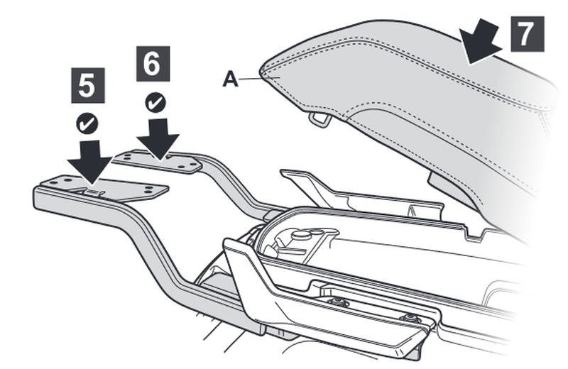 Para el montaje del top case en la moto es necesario añadir a esta fijación, la parrilla incluida dentro de la maleta SHAD (a excepción de TR48/TR37).