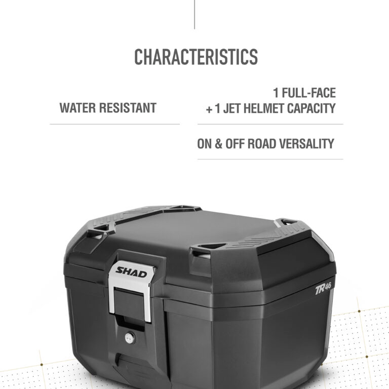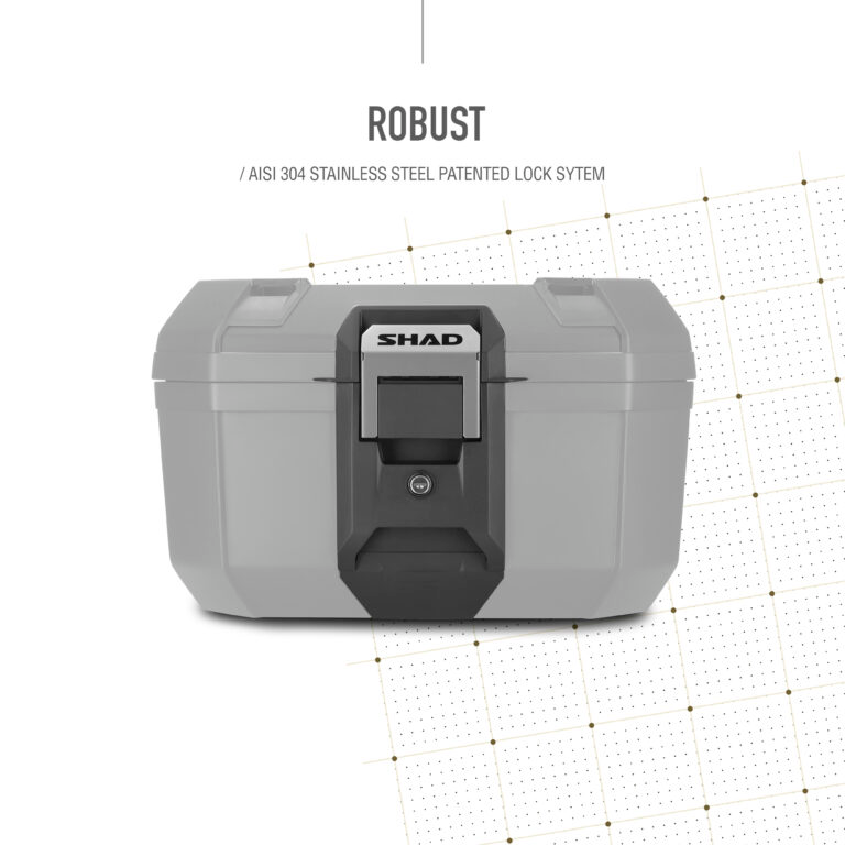 La SHAD TERRA TR46 es una maleta de alta resistencia diseñada específicamente para los amantes de la aventura y el touring que buscan robustez sin renunciar a la ligereza. Fabricada en polipropileno reforzado de alta calidad, este top case destaca por su diseño 100% barcelonés y su estructura sellada que protege el equipaje frente a las condiciones más adversas, como lluvia intensa (IPX5) o polvo. Equipada con el sistema de cierre de acero inoxidable de grado industrial AISI 304, ofrece una seguridad excepcional y una funcionalidad única que permite abrir, cerrar y transportar la maleta en segundos. Su versatilidad la hace apta tanto para asfalto como para rutas off-road, permitiendo además ampliar su capacidad mediante carga externa gracias a sus anclajes superiores integrados.